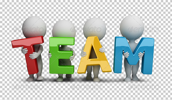 3d small people holding hands in the word “team”. 3d image. Transparent high resolution PSD with shadows. Alpha channel.